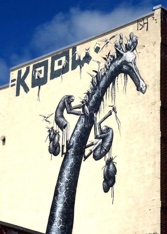 [su_highlight background=”#d5dbfe”]Ma la vera bellezza di Bushwick sono i giganteschi murales[/su_highlight]sparsi più o meno ad ogni angolo del quartiere: passeggiando e ammirando queste opere d’arte a cielo aperto ci si rende davvero conto che le cose stanno cambiando in quest’area un tempo degradata; fino a qualche anno fa chi si fosse trovato a passare per queste strade avrebbe “ammirato” i fatiscenti profili delle fabbriche abbandonate. Adesso queste ospitano studi di artisti e creativi all’avanguardia: in quelli che un tempo erano ruderi, oggi si costruisce il futuro artistico della città! E lo si vede proprio guardando queste facciate diventate enormi “tele” dipinte o scarabocchiate: messaggi di speranza, pace, amore oppure inni alla vita, credo politici e molto altro ancora.