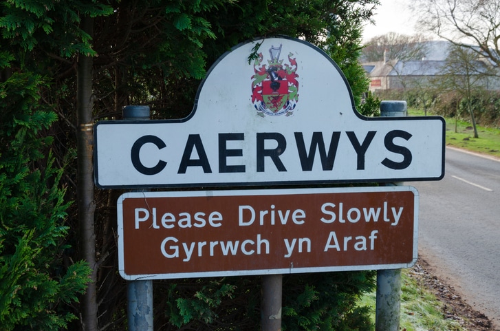Infine, ti potrebbe capitare di vedere segnali con scritte non solo in inglese, ma anche in un’altra lingua non facilmente riconoscibile. Succede solo passando per il Galles: si tratta infatti di scritte in Cymraeg, la lingua gallese, permesse nella regione a partire dal ’65.