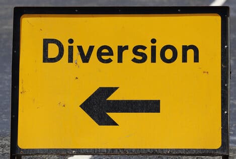 Attenzione! In questa categoria possiamo includere anche i diversion signs, quei segnali che avvisano di deviazioni del percorso nel caso la strada sia chiusa: in questo modo ci aiutano a tornare sul percorso principale. La cosa interessante è che questo formato esiste solo in UK: non lo vedrai altrove!
