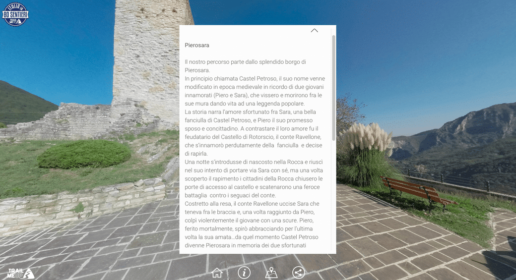 Grazie a Trail Me Up si possono percorrere virtualmente sentieri e percorsi, direttamente dalla prospettiva di un escursionista; in più, durante questo “percorso virtuale”, si possono ottenere anche utili informazioni a corredo delle bellissime foto panoramiche.